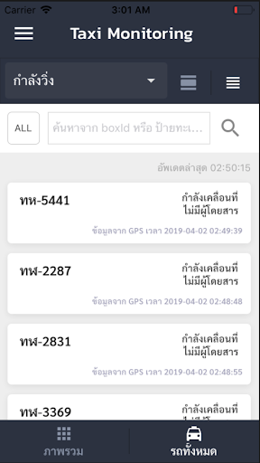 ตรวจสอบสถานะและข้อมูลของรถแท็กซี่ของคุณ พร้อมรายงานสถานะทางการเงิน