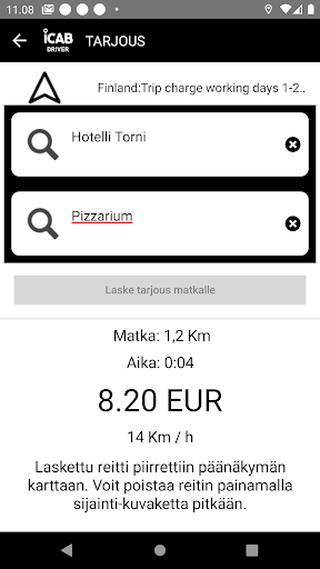 Järjestelmä antaa tariffeihin perustuvan kiinteän hinnan osoitetietojen pohjalta muutamalla napin painalluksella.