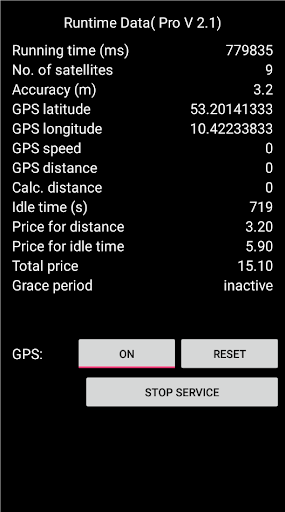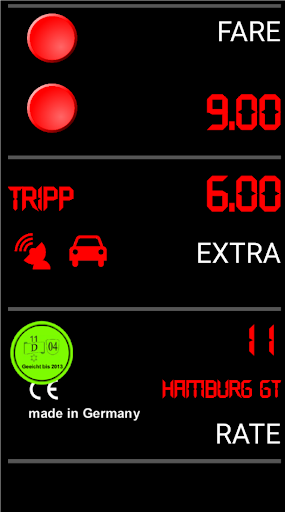 The taximeter app simulates a classic German taximeter, as it is used in taxis for billing the distance and waiting time.