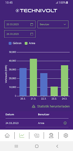 exportieren Statistiken zu den Ladevorgängen. Die App funktioniert mit den