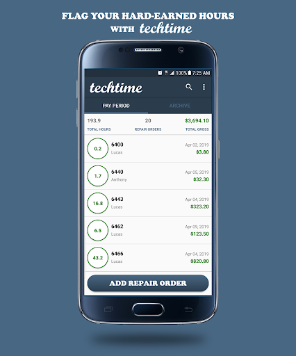 Use techtime on your phone or tablet to log repair orders and hours that you have flagged for your pay period. The techtime app is designed for automotive technicians to personally assist with making sure the hours that they have flagged match with those of payroll.