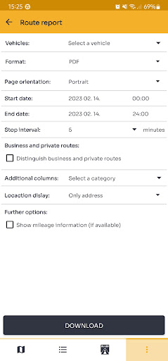 The application can be used for tracking vehicles activated in the TELL ConnectCar fleet management system.
