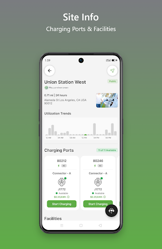 – Details Site Info Screen: You can view detailed information about charging stations, including location, Availability, Amenities, Pricing, Opening times and more.