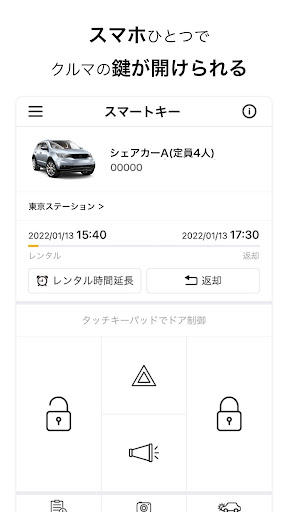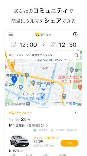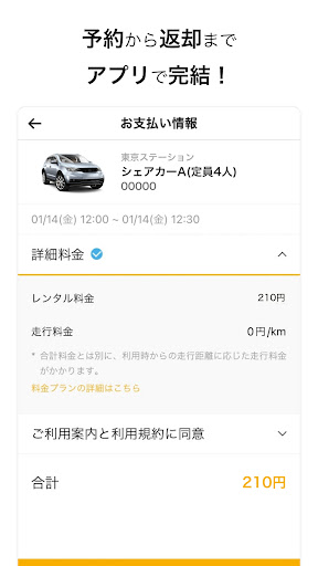 カーシェアの予約、貸出、決済がこのアプリ1つで完結します。