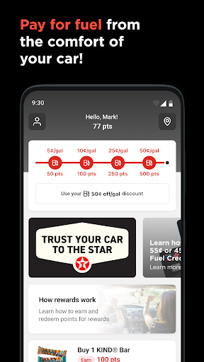 • Connect your phone to the car’s dashboard and open the app to find stations, redeem rewards, add a carwash, and pay for fuel. This feature is available for Android Auto users.