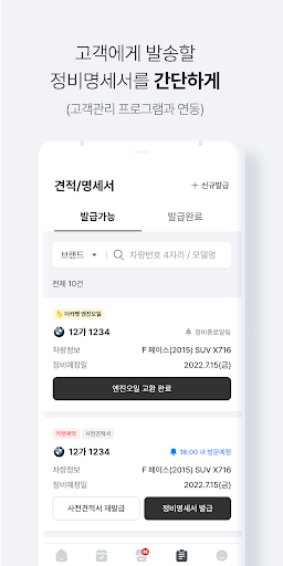 ✓ 정비명세서 발송건수 카운트하여 고객 앱에 내 정비소 수입차 모델별 정비건수를 표기