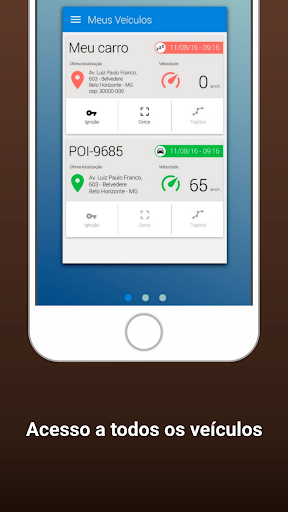 Você poderá ver aonde estão todos os seu veículos no mapa, e poderá consulta o trajeto diário, e visualizar todos os locais que seu veículo esteve no dia.