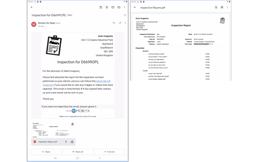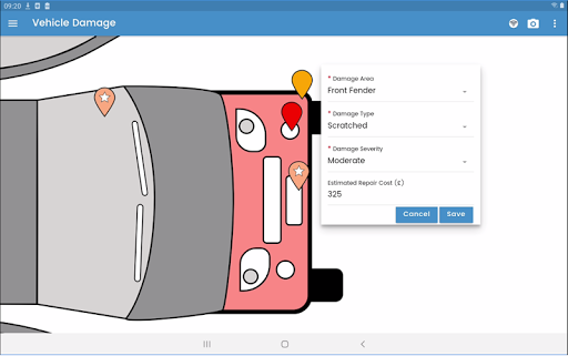 Using the app, you can create a car inspection report (selecting from many different types), and with interactive diagrams, pinpoint precisely where damage is on a vehicle. In order to confirm your findings and show the full extent of the damage, the app allows images and videos to be recorded and stored alongside the report. Everything is stored for reference any time you need it.