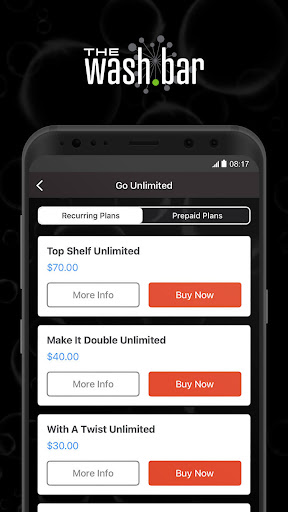 Use The Wash Bar app to create an account, manage your preferences, wash plan, make single wash and detail purchases, and sign up for deals and discounts.