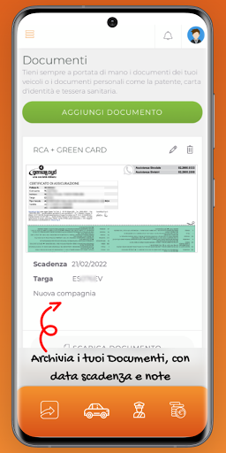 Uno spazio organizzato e ben suddiviso per tutti i documenti relativi ai veicoli e al driver. Ogni elemento ha l’indicazione di appartenenza identificato con la targa, la data di scadenza e uno spazio testuale per note importanti.