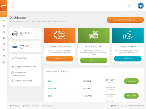 L’app Tiassisto24 migliora la gestione di tutti i veicoli della famiglia e delle Flotte Aziendali. Un aiuto per ogni automobilista e motociclista.