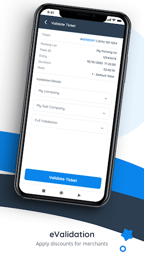 To apply a validation, enter the ticket details and choose from a list of validation options. Once the discount type is selected, the discount is applied in real time to the ticket. The TIBA PARCS devices recognize the validation, calculate the new parking fee, and update the ticket balance accordingly.