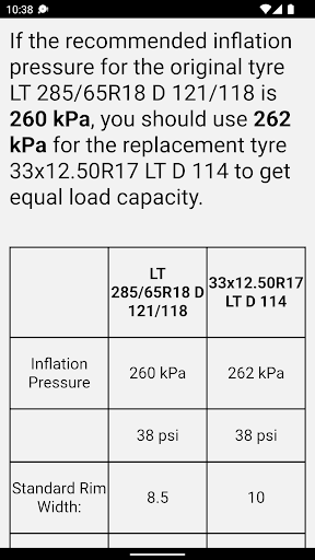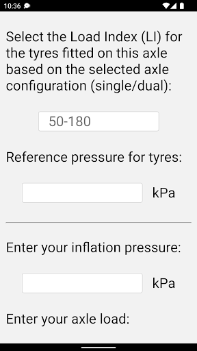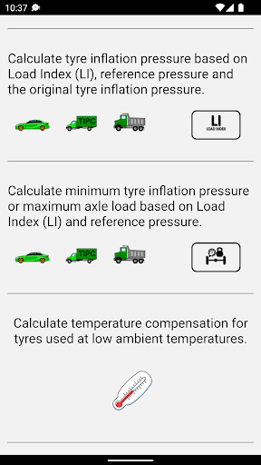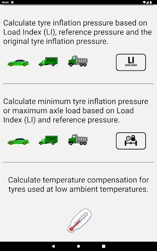 – Calculate inflation pressure based on Load Index (LI) instead of searching for specific tyre sizes.