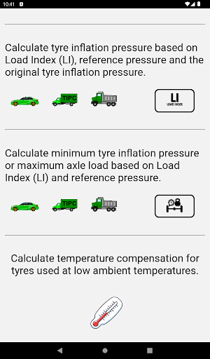Tyre Inflation Pressure Calculator Pro – the easiest way to calculate what tyre inflation pressure you need whether you have tuned your car with new wheels of different size or want to optimize your truck tyres for your axle load.