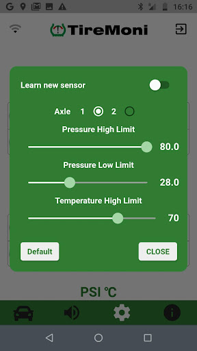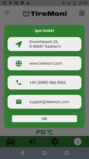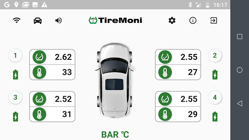TireMoni TPMS: the tyre pressure monitoring system for your Android device. Early warnings prevent problems; reduce tyre wear and fuel consumption. Connect to the STM-57x BLE kit and view your tyre pressure and temperature data at all times. Adjustable warning thresholds allow usage for all vehicles. Monitors from 2 up to 8 wheels.