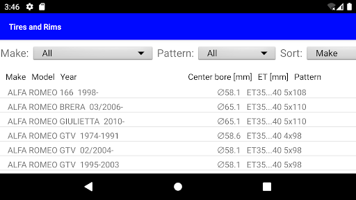 – Rim ( wheel ) bolt patterns for over 1000 car models with efficient sorting possibilities