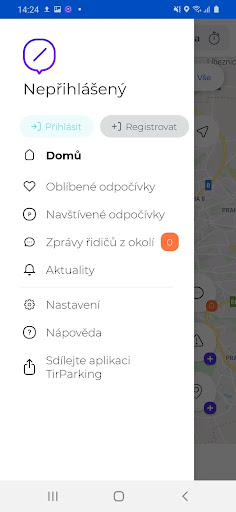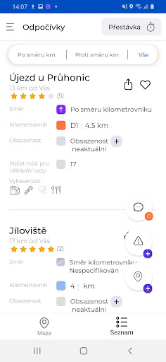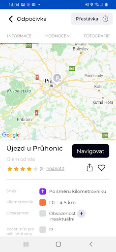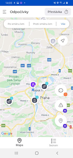 Aplikace umožnuje nastavit upozornění na blížící se povinnou přestávku a předávání si zpráv s dalšimi řidiči z okolí. Aplikace pokrývá parkoviště v rámci ČR včetně jejich vybavenosti (WC, sprcha, občerstvení…)