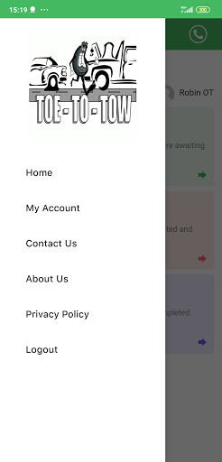 Vehicle with flat tire, with Key Fob character walking on street towards Tow Truck, with the words Toe-To-Tow overlapping street.