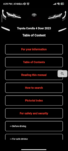 Toyota Corolla User Manual, If you are an owner of an Toyota Corolla, this app will help you a lot in your day-to-day use No need to go through a traditional paper book, handbook Glance through this digital version of Toyota Corolla to resolve your issues and all the how-to’s, and nitty-gritty When and which oil to use and a lot more Download and refer to it as many times you want without the risk of losing it