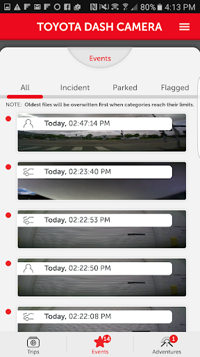 – For your safety, the app will disconnect from the TOYOTA DASHCAM if vehicle movement is detected. Do not operate your Android smartphone while vehicle is in motion.