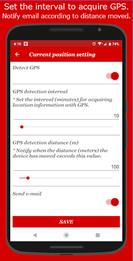 (2) When the current position is set, the alert information moved from the fixed position acquired by GPS will be sent by e-mail.