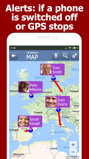 The app checks every 60 seconds if tracker phones are switched on. If a phone has a problem, damaged or no signal connection, the app detects the problem.