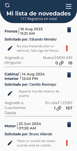 APP de TRANSORTEX, software para gestión de flotas: Actividades de mantenimiento, control de viajes, gestión de neumáticos, inventario de repuestos e insumos, control de combustible y vencimientos de documentación.