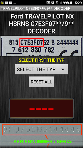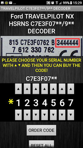 Radiocode Decoder for all Ford Travelpilot Serial beginning with C7E3F07** or C7E3F09**