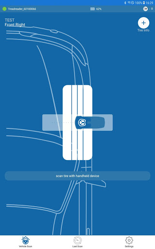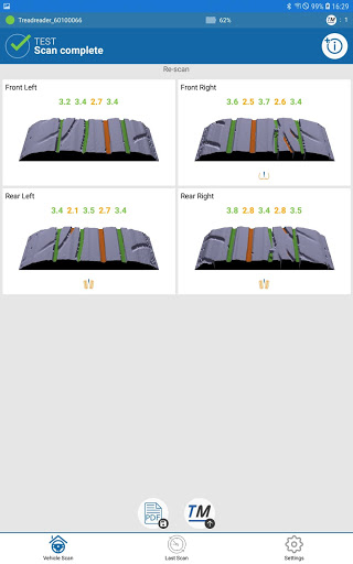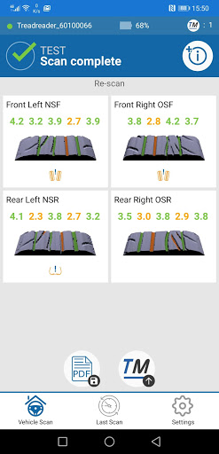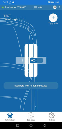This App developed by Snap-on Total Shop Solutions controls the TreadReader Hand Held Scanner. Intuitive screens guide the users through single tyre scan, full vehicle scan, creating a PDF Summary Report and App Set Up.