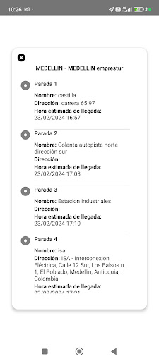 Es una aplicación para la gestión de servicios de transporte de pasajeros o carga para la empresa Emprestur SAS, donde los Conductores reciben, hacen seguimiento de los servicios y verifican la información de los servicios programados