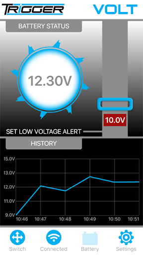 – Monitor voltage of connected battery (6 Shooter and VOLT only)