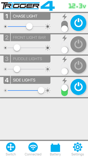 Control power and dimming functions as well as a strobe features when used with LED or conventional lighting. It is simple to set up and allows for user customization. Use the app to “Trigger” lights from outside the vehicle whenever you might need to activate an accessory on demand.