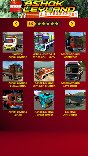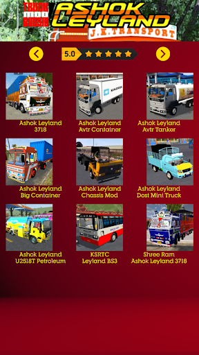 Aplikasi ini menyediakan kumpulan mod bussid indian truck paling lengkap dengan koleksi truk paling terkenal di india yaitu bussid ashok leyland truck mod Indonesia. Kamu bisa menemukan banyak indian mods for bussid di aplikasi ini. Kamu bisa mencoba indian bus mod bussid ashok Leyland yang terkenal. Ada beragam variasi keren salah satunya ashok leyland 3718 bussid truck mod.