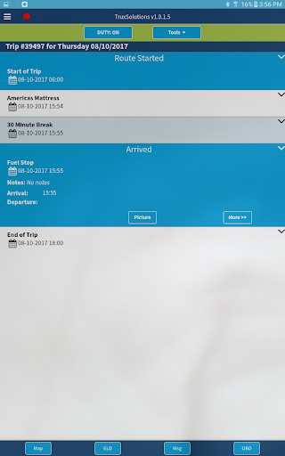Trux Solutions also has a product that extends the electronic logbook that will allow you to route and track your entire fleet. It provides real-time route times, maps, asset tracking, drop in schedule items, customer billing, and in-app messaging to your operators.