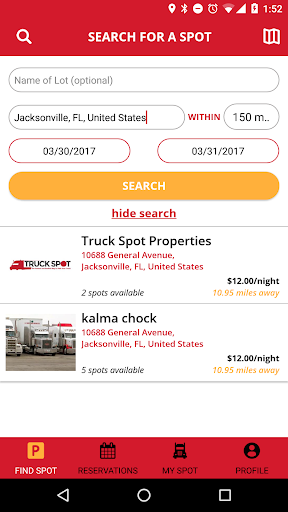 Description – Truck parking made simple: VIP semi truck parking. Stop wasting time searching for an overnight truck parking spot. Just reserve a spot the fastest and easiest way. Earn money by posting your home spot to be rented while you are running over the road. Truck Spot is the only truck parking app in the United States featuring semi truck parking reservations and the ability to post your home spots to be rented while you are away.