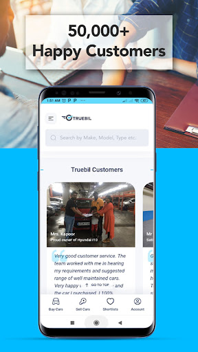 The Truebil App allows you to browse the complete range of certified used cars, shortlist the desired cars, view detailed inspection reports of all cars, and book a test drive at your nearest Truebil Car Hub.