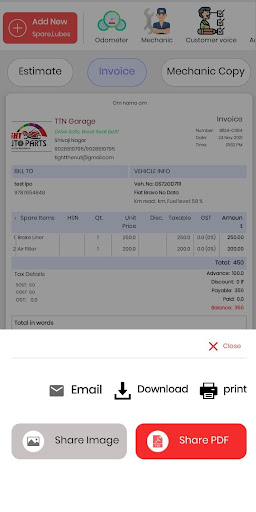 2. Auto Repair Invoice/Bill and Estimate System: TTN Garage is a free software for automobile workshop provide free invoice template that can be used in Online invoice Software or Garage Billing Software or Workshop billing App or Mechanic App. Provide auto repair invoice pdf to your customers. Get free automotive invoice, jobcard template and try multiple garage invoice template pdf using premium features of best workshop App.