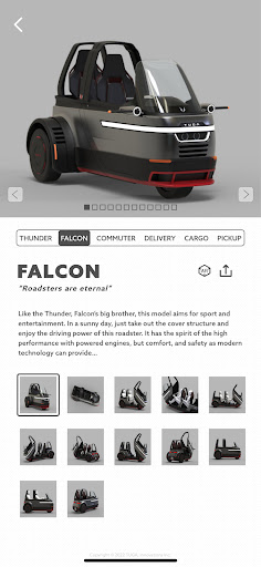 With an aerodynamic open cockpit or fully enclosed, the TUGA delivers form, function, and safety in all climates. With modular bodies, ad-dons, plug-ins and regular updates, consumers can own a base model and continue to build out their perfect TUGA.