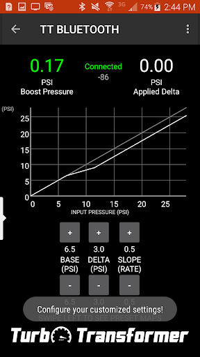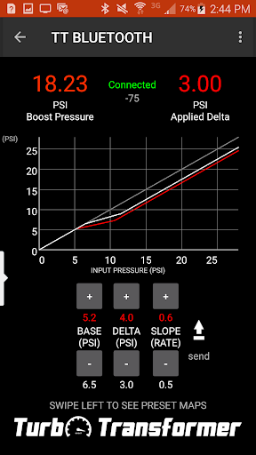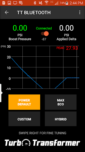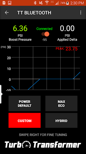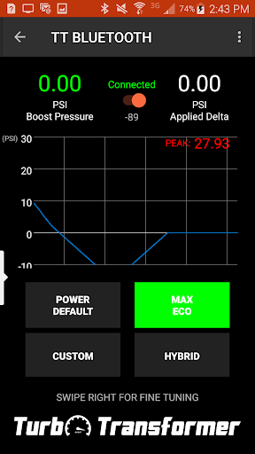 It allows the user to connect and modify the turbo in your vehicle with Turbo Transformer chips. There are multiple modes to choose from, and you can even create your own mode! You may also view the live graph of the vehicle’s performance.