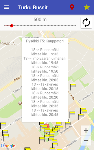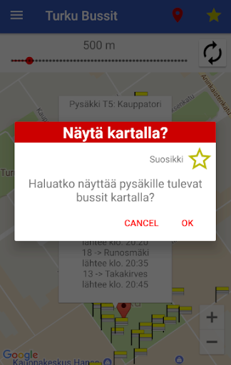 Find the nearest bus stops and city bike locations according to your location in Turku.