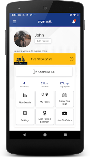 TVS Connect is the app for TVS vehicle owners. It brings to life the power of TVS SmartXonnect technology, making the riding experience easier and safer.