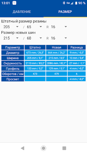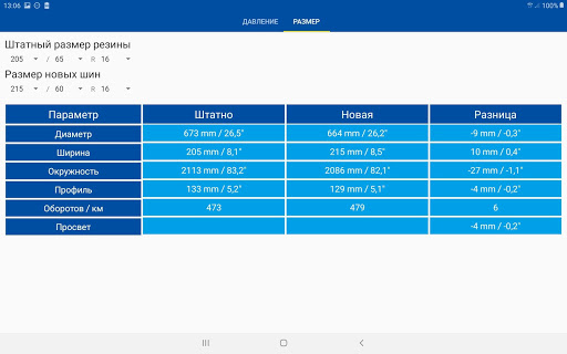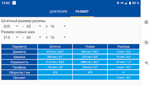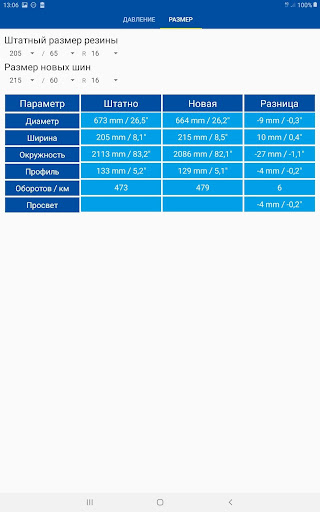 The author of the application does not bear any responsibility for damage resulting from the use / non-use of this application. If you are not sure of your actions – use the rubber recommended by the manufacturer of your car, pumped up by pressure recommended by the manufacturer.