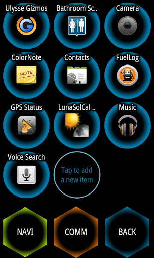 ★ Three shortcut pages—Application, Communication, Navigation; for a total 36 user-defined application shortcuts