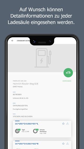 Die Umicore Ladesäulenverwaltung ermöglicht Ihnen den schnellen und komfortablen Zugang zur Ladeinfrastruktur für alle Dienstfahrzeuge am Standort Hanau. Mit Hilfe der Übersichtskarte finden Sie schnell eine freie Ladesäule. Diese können Sie ganz einfach aus der App heraus freischalten. Alle Ladevorgänge gelangen in Ihr persönliches Nutzerkonto, die Abrechnung erfolgt per Kostenstellenumbuchung. Ihre persönlichen Daten können Sie direkt in der App verwalten.