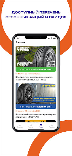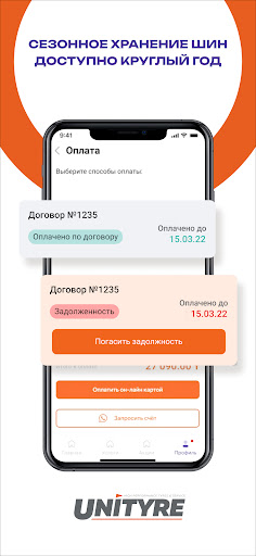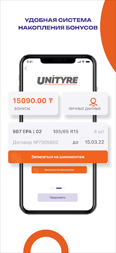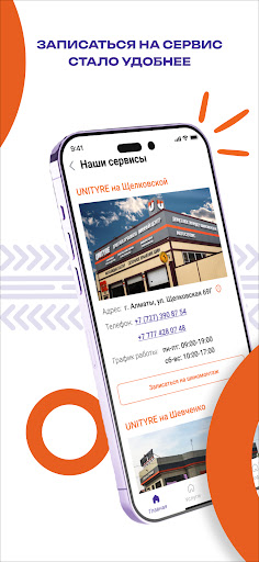 App of tire center network UNITYRE, Kazakhstan, Almaty and Astana.