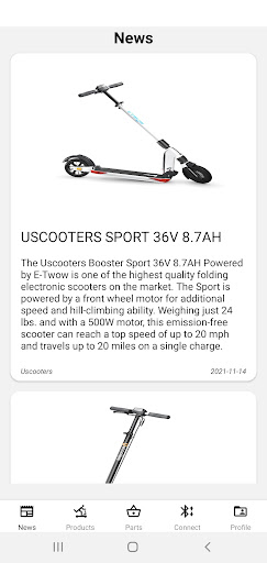 This is the official application to configure and control your Uscooters Electric vehicle*, but also to keep in touch with the latest news in the world of electric mobility. The application allows you to connect your smartphone to the electric scooter using Bluetooth Low-Energy capabilities.
