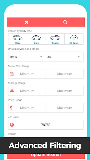 Find your dream car fast with easy to use filters (price, mileage, body type, etc.)
