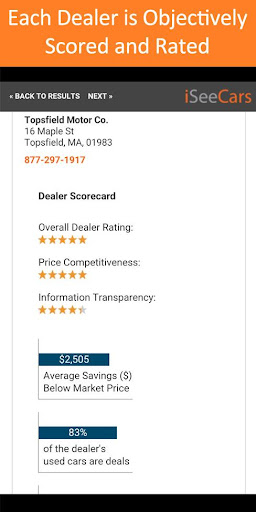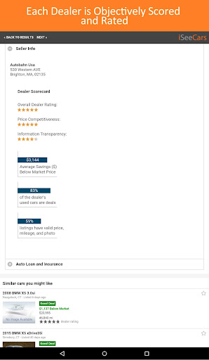 While finding the perfect used car is great, it would be even better if the car was being sold by a trustworthy car dealer, not one that’s out to scam the consumer. We use a number of signals to determine how price competitive a dealer is, how transparent the dealer is in disclosing information about the car, and how responsive it is in getting back to shoppers’ inquiries and questions.
