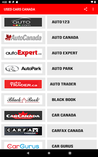 Used Cars Canada is best App for Buy and Sell used Cars. The App is in list view layout with list of all best used car sites with beautiful graphics. The list of sites and categorized with site name and beautiful icon for better understanding of user. By selecting from the list, User will redirect to the site page in easy and simple way to find used car and after working on same the user can back to the main app activity with back button and can select new item of anyone’s choice and so on. it is very simple and easy to use to access all sites in single activity to save user’s time and mobile space.