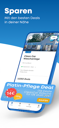 – Mehr als 10.000 Waschanlagen in einer App- Alle Öffnungszeiten, Preise, individuelle Angebote und Spezialwäschen- Top-Deals und Schnäppchen im Deal-Finder- Mehrere Autos über einen UUNO-Account registrierbar- Unbegrenzt viele Wäschen im Voraus buchbar
